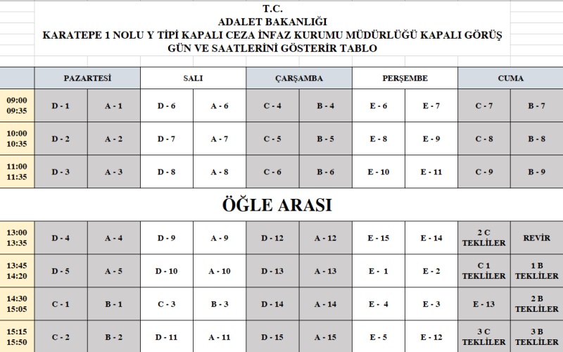 KARATEPE 1 NOLU Y TİPİ KAPALI CEZA İNFAZ KURUMU KAPALI GÖRÜŞ TABLOSU